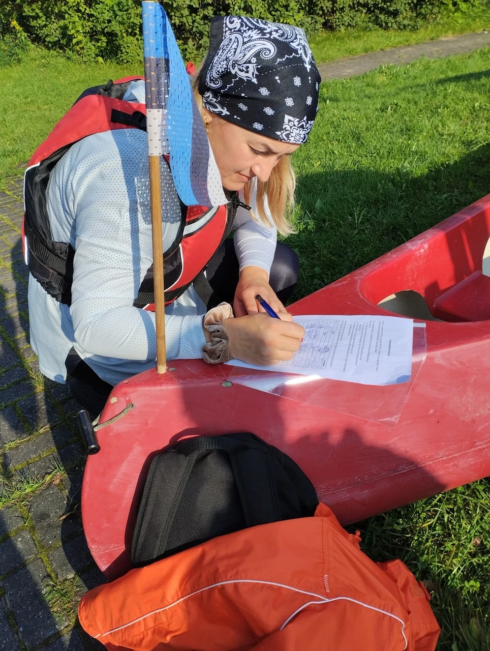 MTÜ KULLARATAS Marya Angletorium teraapiakodu arendusjuht ja ettevõtja Ingliterapeut Marya on lisaks teraapiakodu arendamisele juhendajaks kolmele VOCO giidiõpilasele, kelleks on MAREK KÕLLAMETS, MAGDALENA KALEV JA JUNO MANDRE. Harjutades kolmikuna koos- ja meeskonnatööd ning ühist planeerimist ja elluviimist, sai sedakorda teoks, peale Emajõel kanuudega praktiseerimist, ka Ahja jõe kanuumatk. Teenusepakkuja peab suutma mõelda mitmeid samme ette, et tagada inimeste turvalisus ja instrueerida neid eesootava osas ning seetõttu on ühiselt läbi viidud ja kogemuslikud praktikad vajalikud. Siinsel fotol näidatakse turvavesti õiget selga panekut ja kõikide lisade kinnitamist, et kanuusõitu saaks turvaliselt nautida.