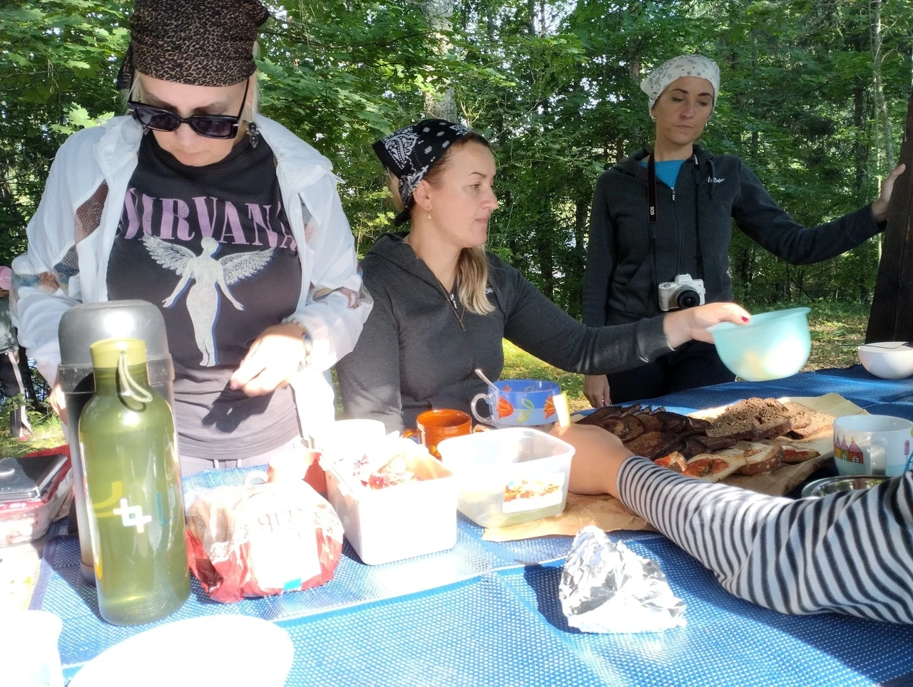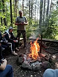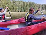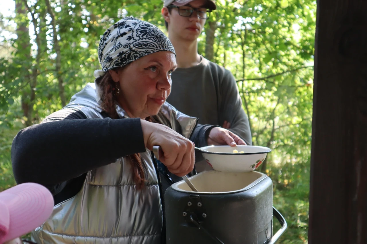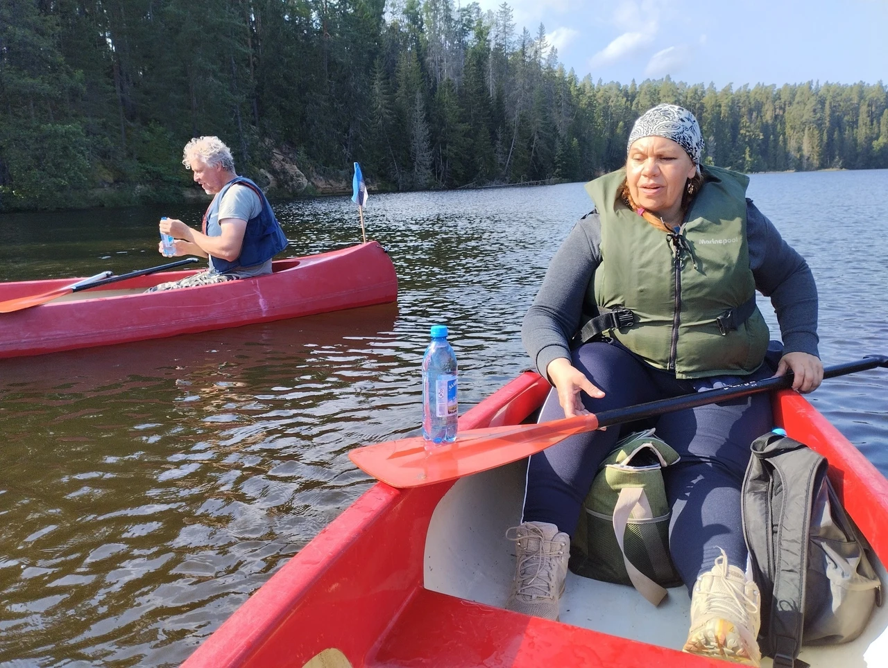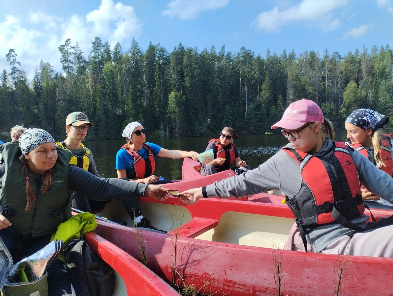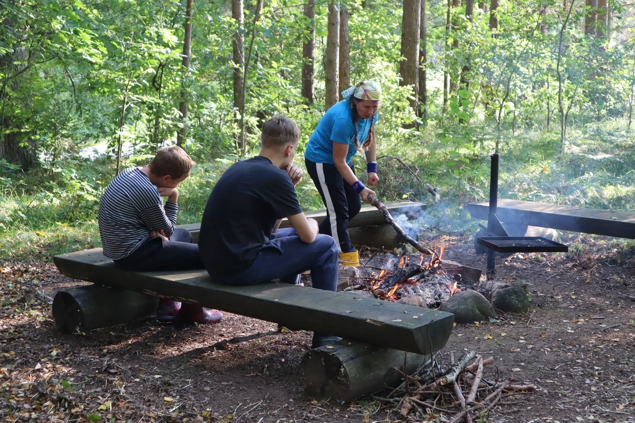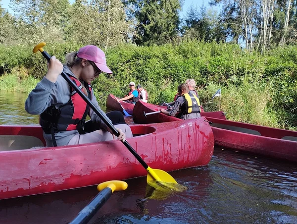 Tähelepanelikult loodust vaadeldes saime näha ka rästiku sprinti vees, mis tekitas elevust. Rästikud eelistavad elada niisketes segametsades, metsaservades, raiesmikel, soodes, jõgede ja järvede kallastel. Meie jälgisime teda silmadega ja imetlesime rästiku suutlikkust vees kiiresti ujuda. Ühel hetkel kõlas laul "Laevuke läks merele". Selliselt jõe peal liueldes ja lauldes läks see eriti hinge, mida nooredki hiljem mainisid oma tagasisides, et meeldis. Toredaks kujunes ühine kehakinnitamine Ahja jõel, mil kogunesime kanuudega kobarasse ja saime ühiselt lõunatades muljeid vahetada ning tunda endid hästi.