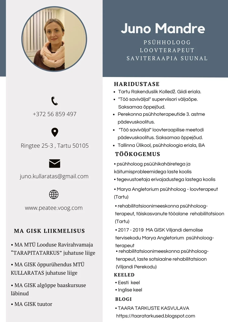 5. Teenuseosutaja Fb leht "Loovuslik saviteraapia ja psühholoogiline nõustamine" avaneb SIIN